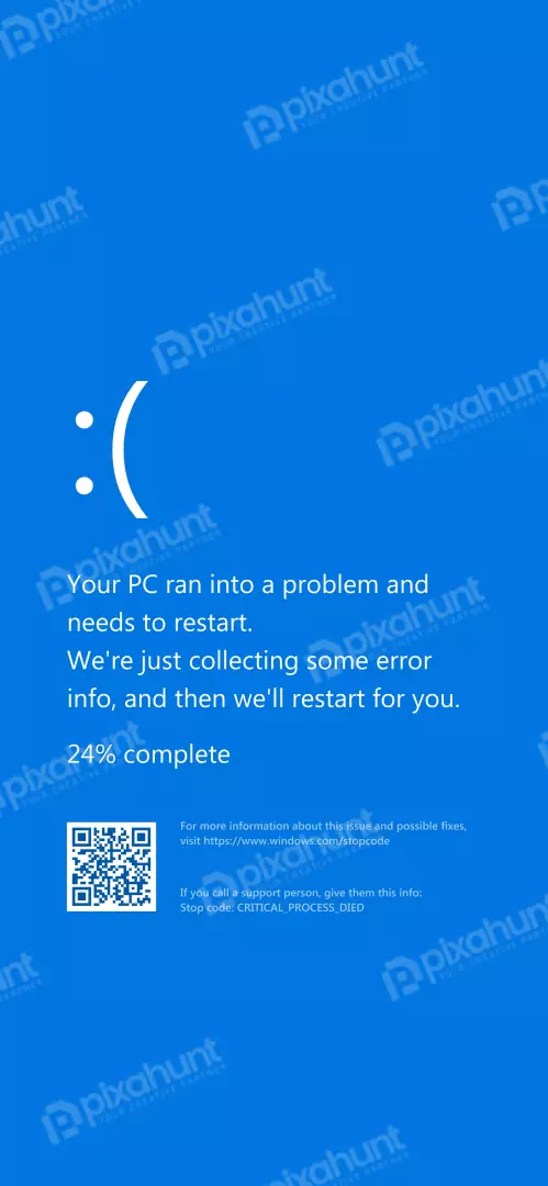 Windows PC CRITICAL_PROCESS_DIED error screen with QR code