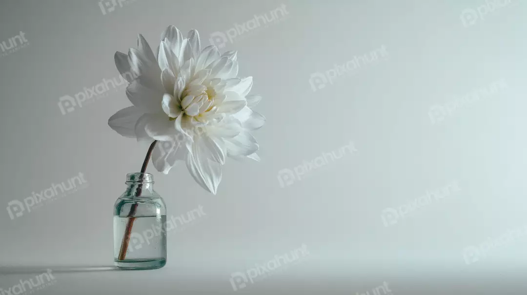 Elegant white dahlia flower in a glass vase with water