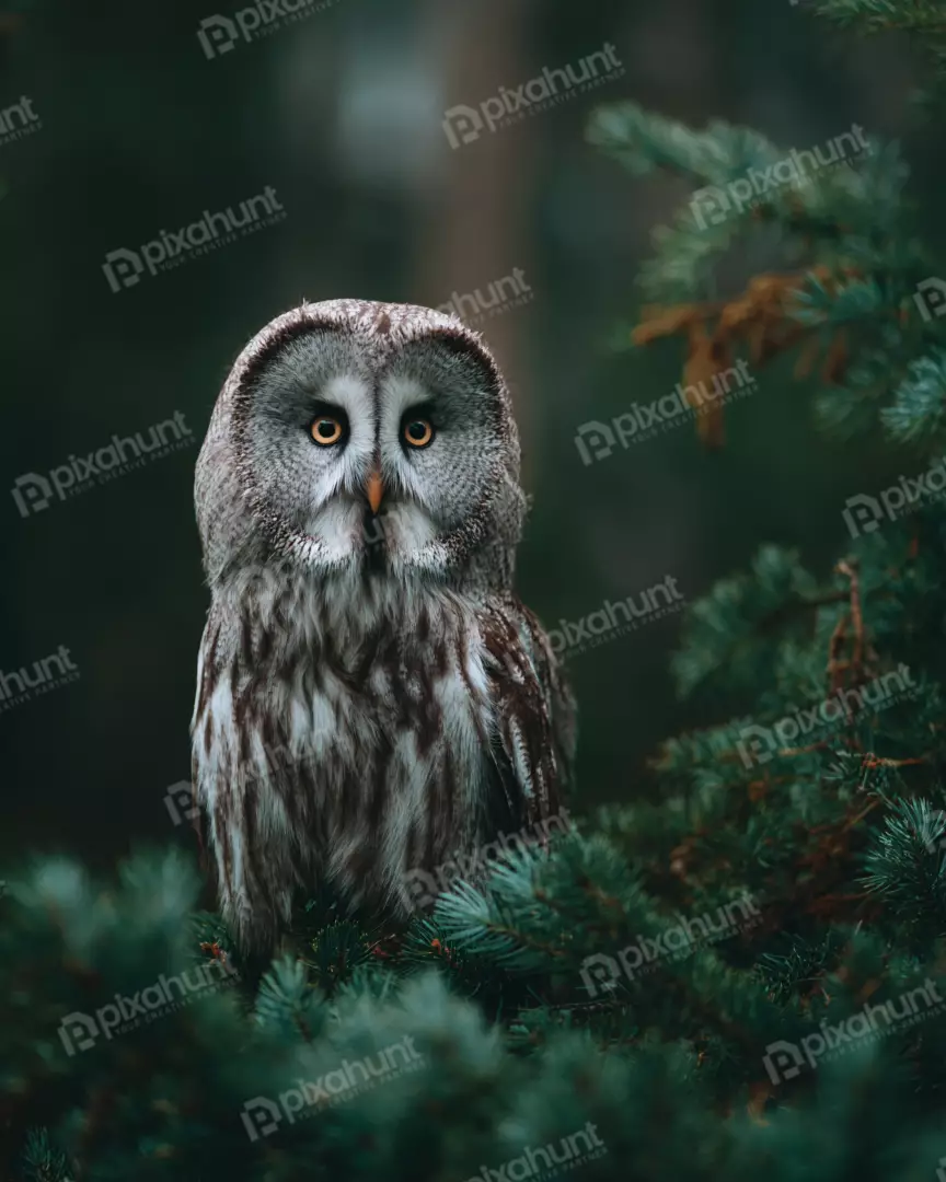 Majestic Great Grey Owl Perched in Dense Evergreen Forest