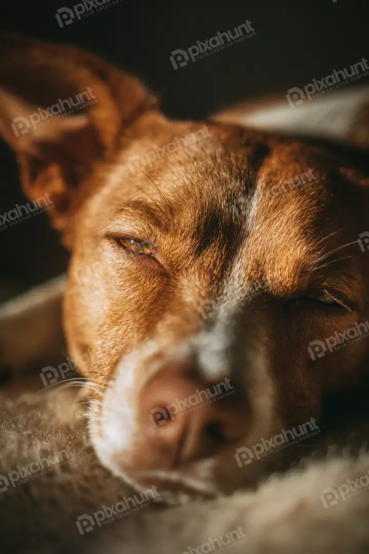 Peaceful Basenji Dog Resting with Eyes Closed in Warm Golden Light