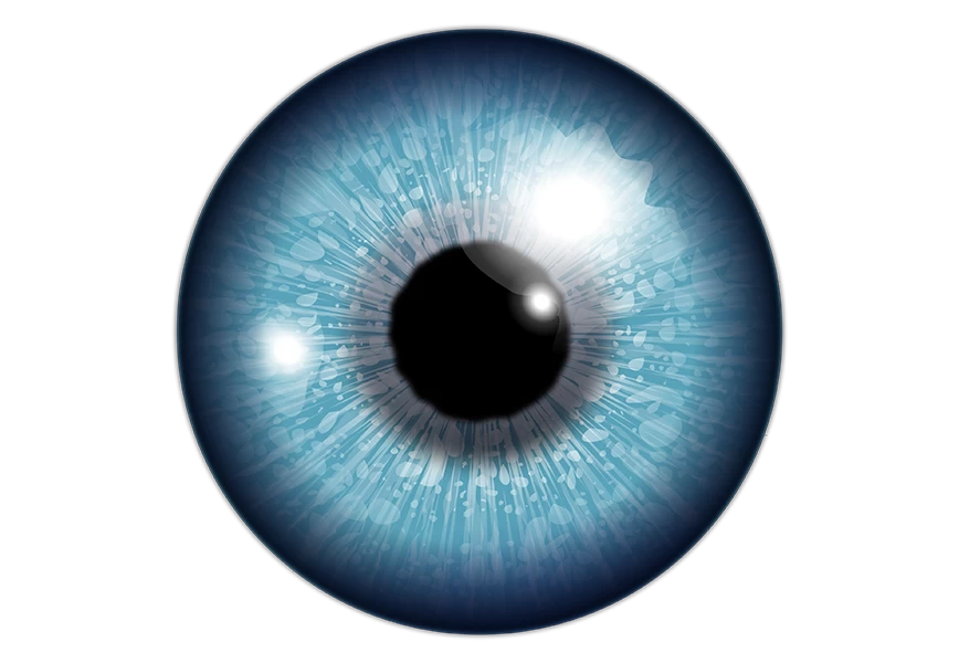 Close up image of human iris 3d illustration ideal for transparent background or texture