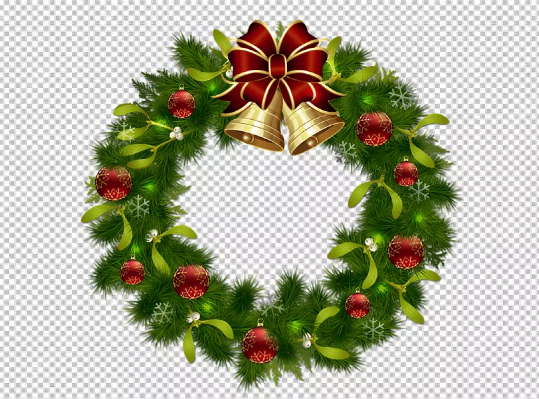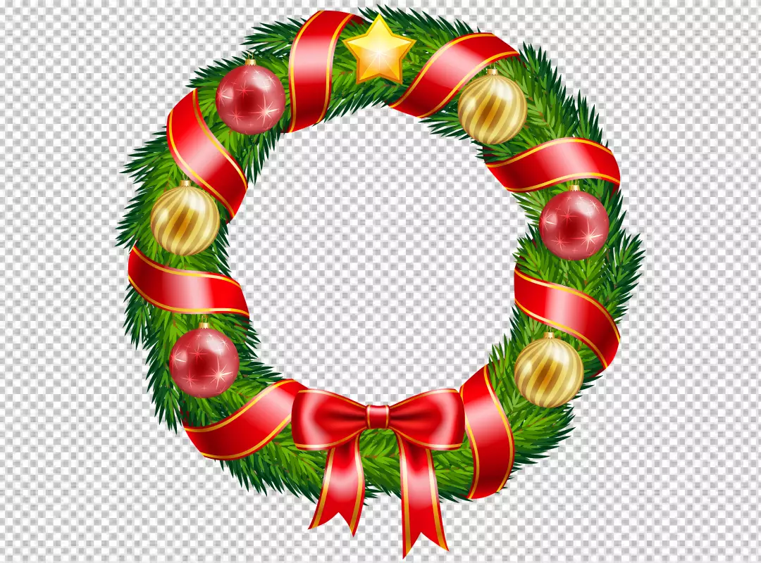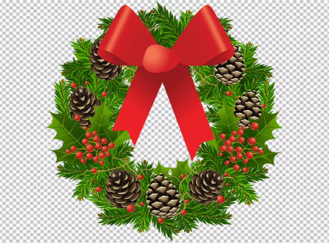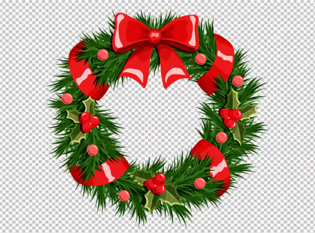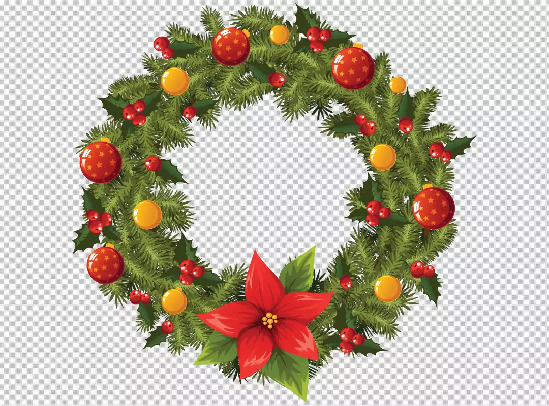 A wreath with a red berries on it is shown on a transparent BG PNG