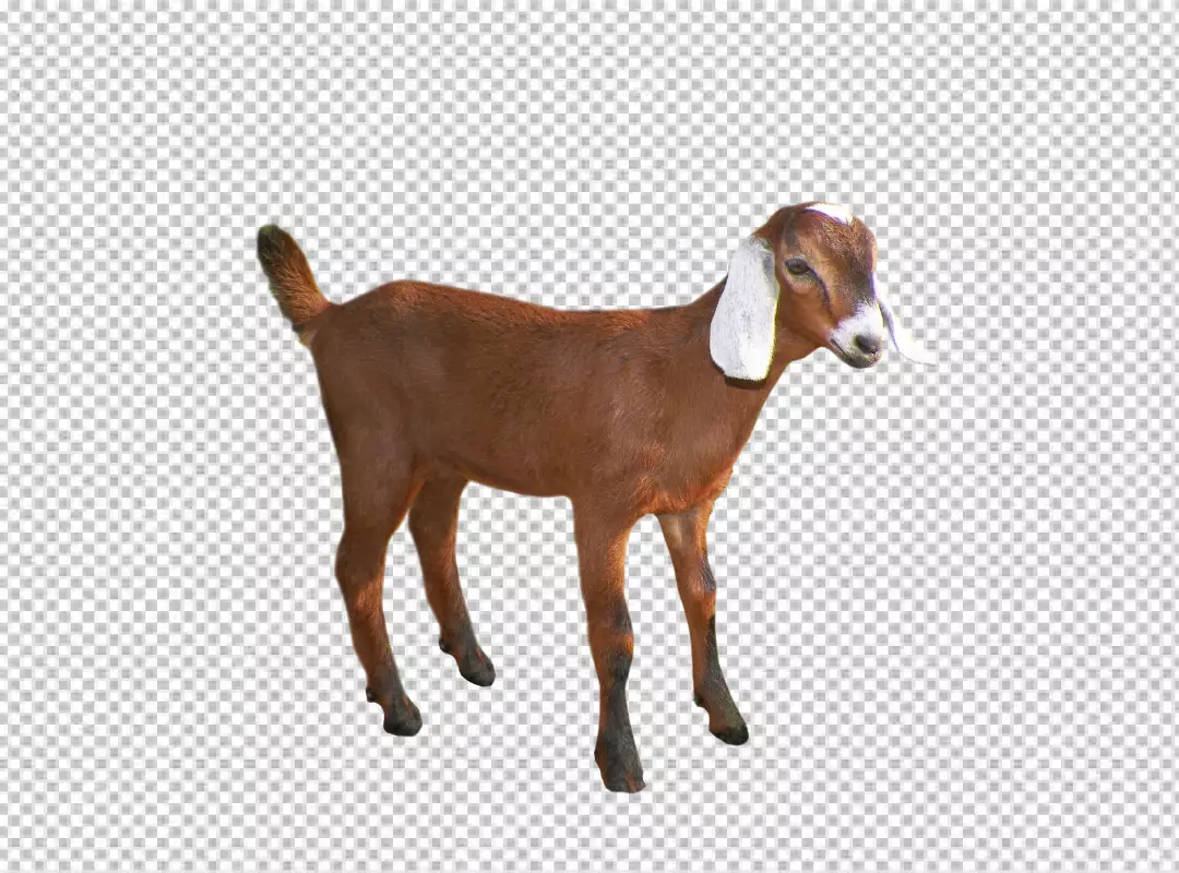 Cute smiling goat in the middle of a field on a bright sunny day transparent background