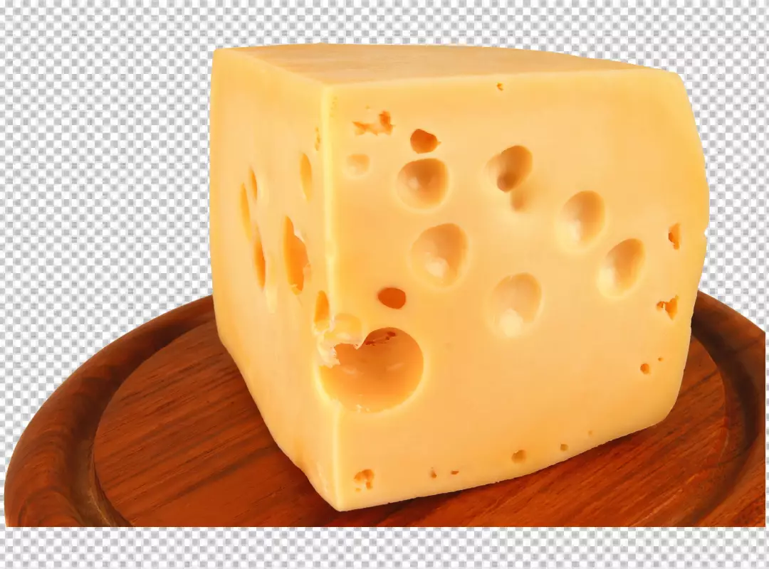 Emmental cheese piece Swiss cheese Isolated on transparent background High resolution image Closeup