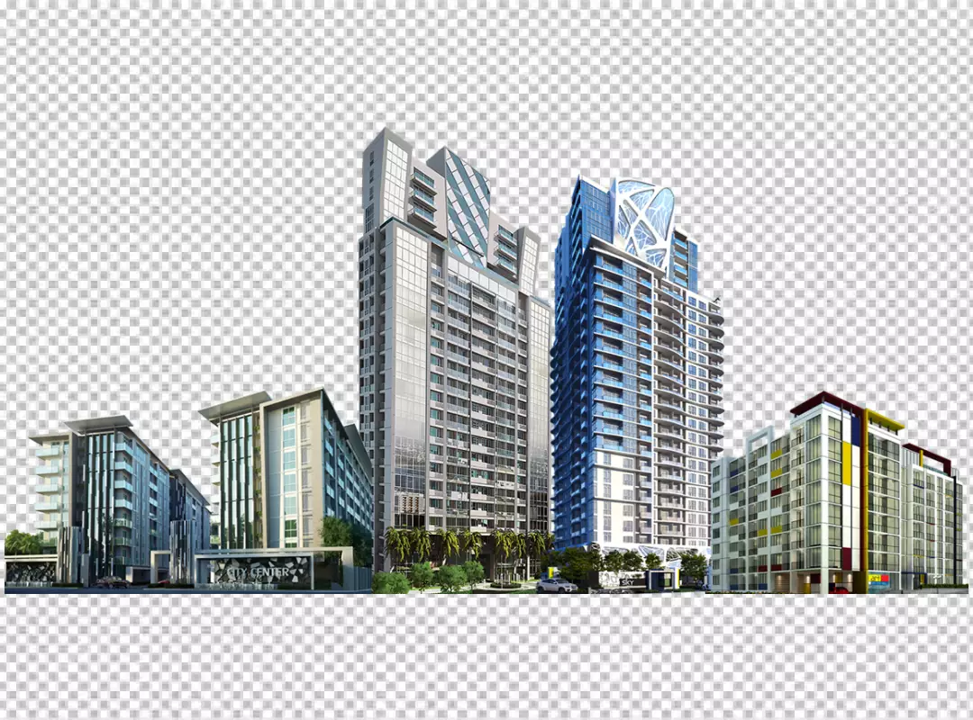 Low angle shot of the buildings in Harbourfront in Toronto, Canada