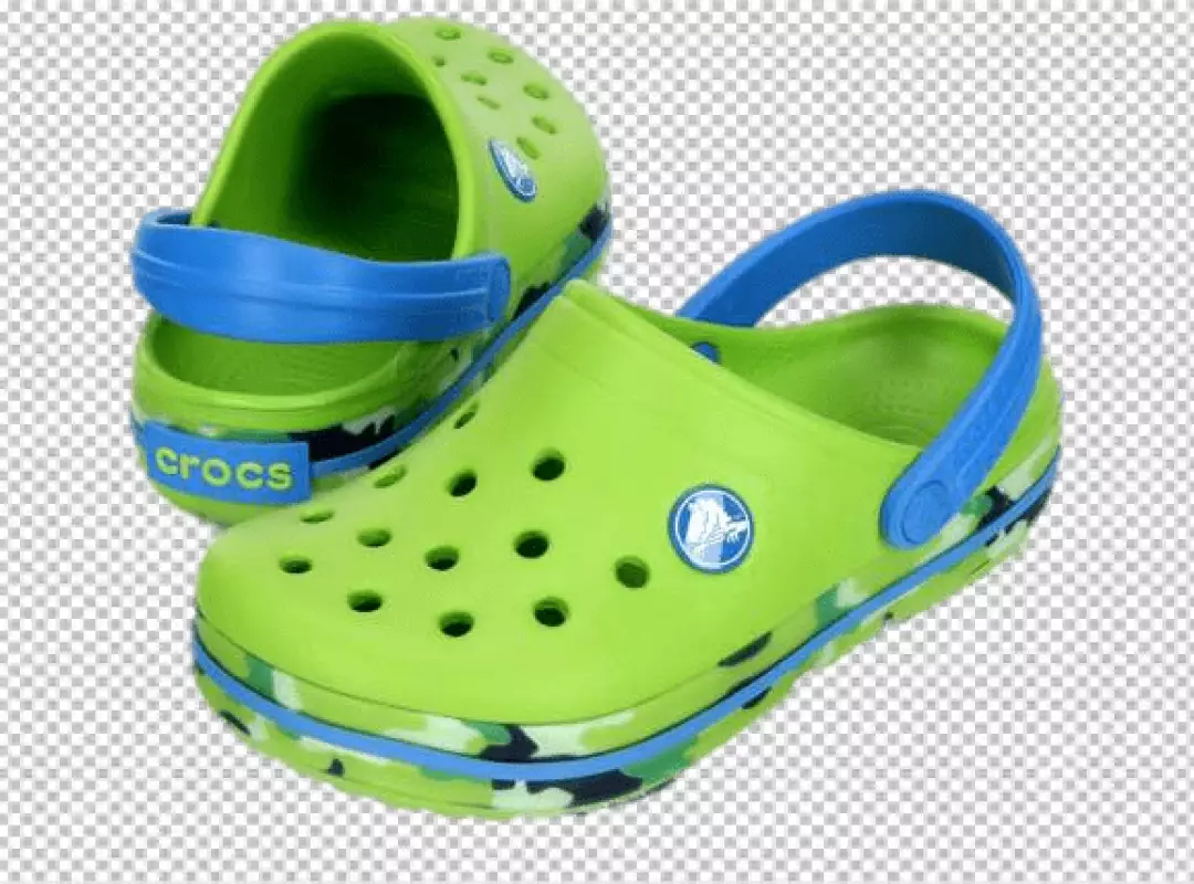 Blue and light green crocs on a white background Rubber shoes