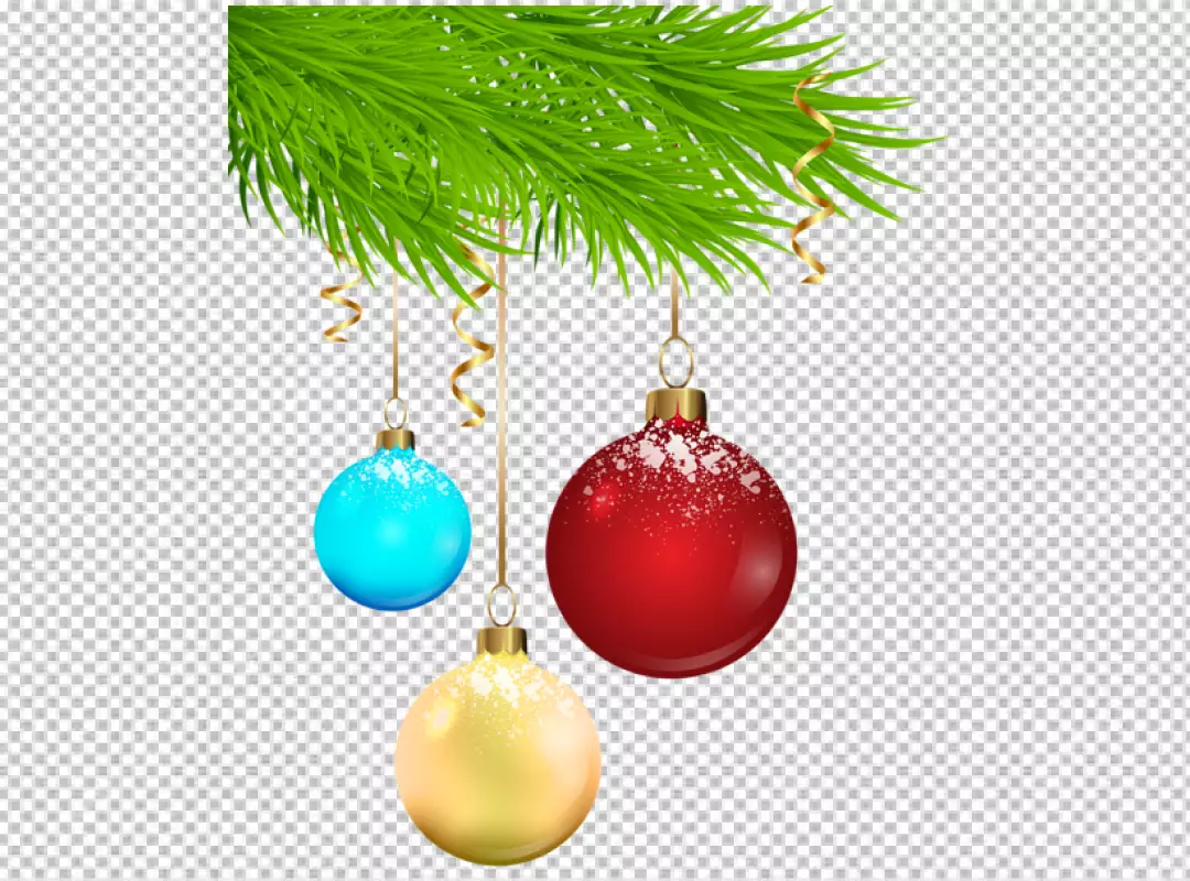 A collection of christmas ornaments including one of the ornaments has a pattern of a design transparent background