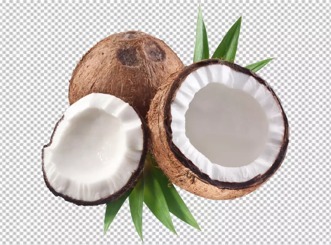 PNG Coconut with half and leaves on