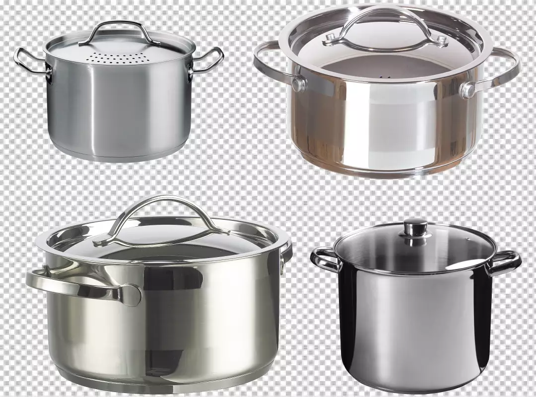 PNG Pans and pots realistic set with frying pan saucepan and bowl