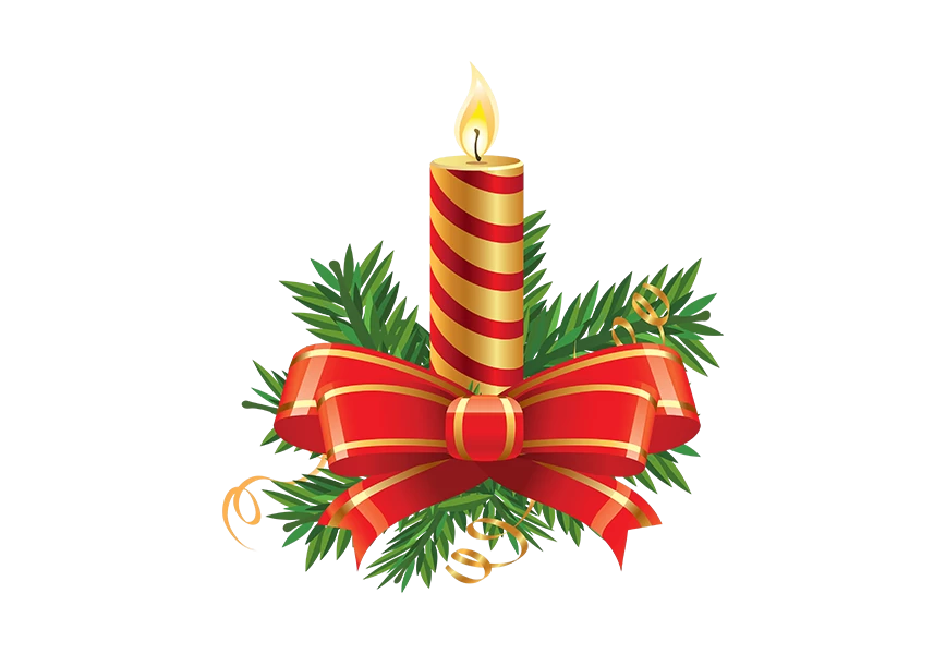 Christmas composition with a burning candle two red Christmas balls and Christmas tree twigs transparent background