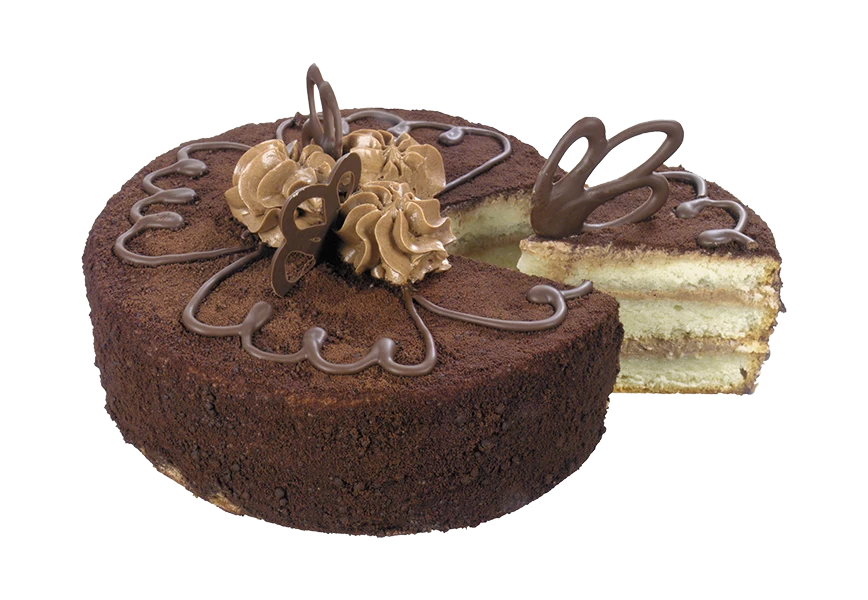 Chocolate sponge cake decorated with cocoa syringes transparent background