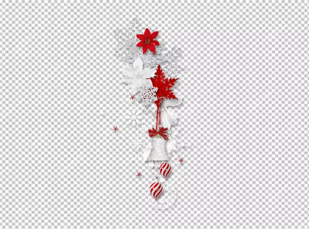 Christmas decoration isolated on white background Snowflakes hanging wirh red ribbons