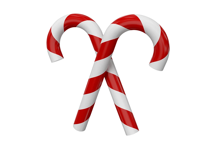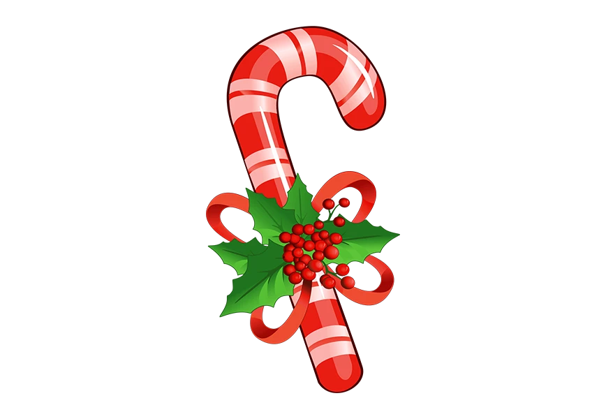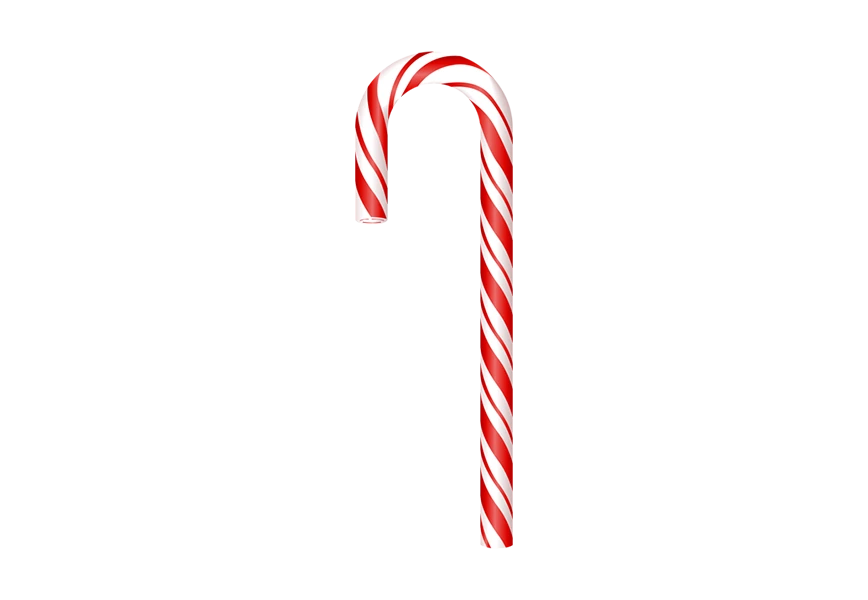 Red striped candy cane Xmas traditional sweet delicious or Christmas tree toy decor realistic 3d vector illustration transparent background