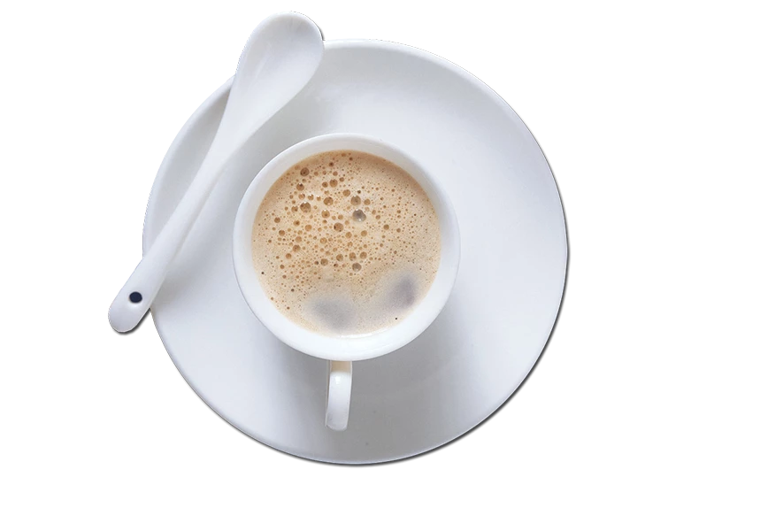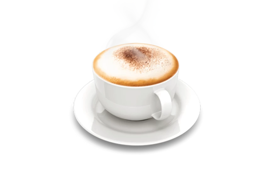 Realistic coffee cup Espresso 3D mockup white mug on plate side view hot Transparent Background