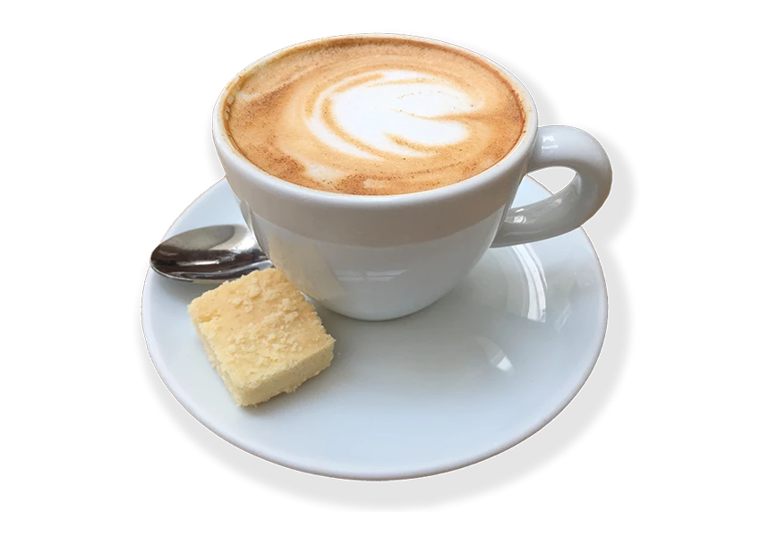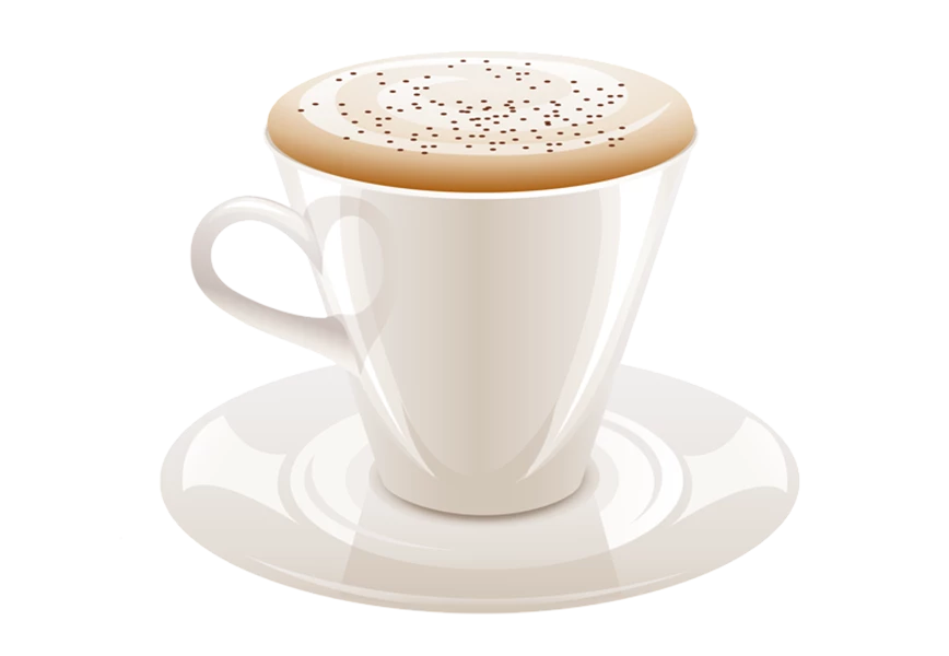 Coffee illustration with filled coffee cup and few coffee beans, Transparent Background