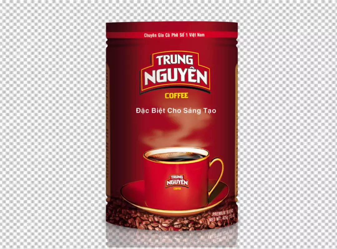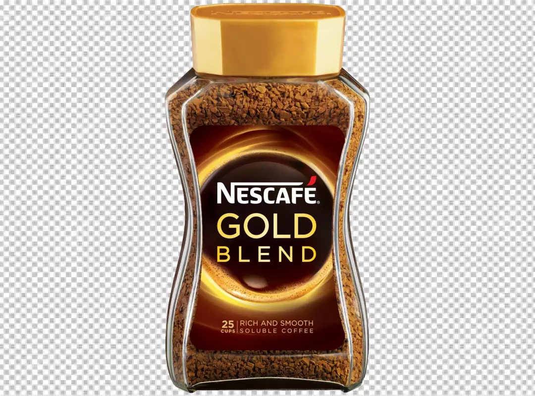 Side view of fresh roasted coffee beans on a glass jar on transparent BG
