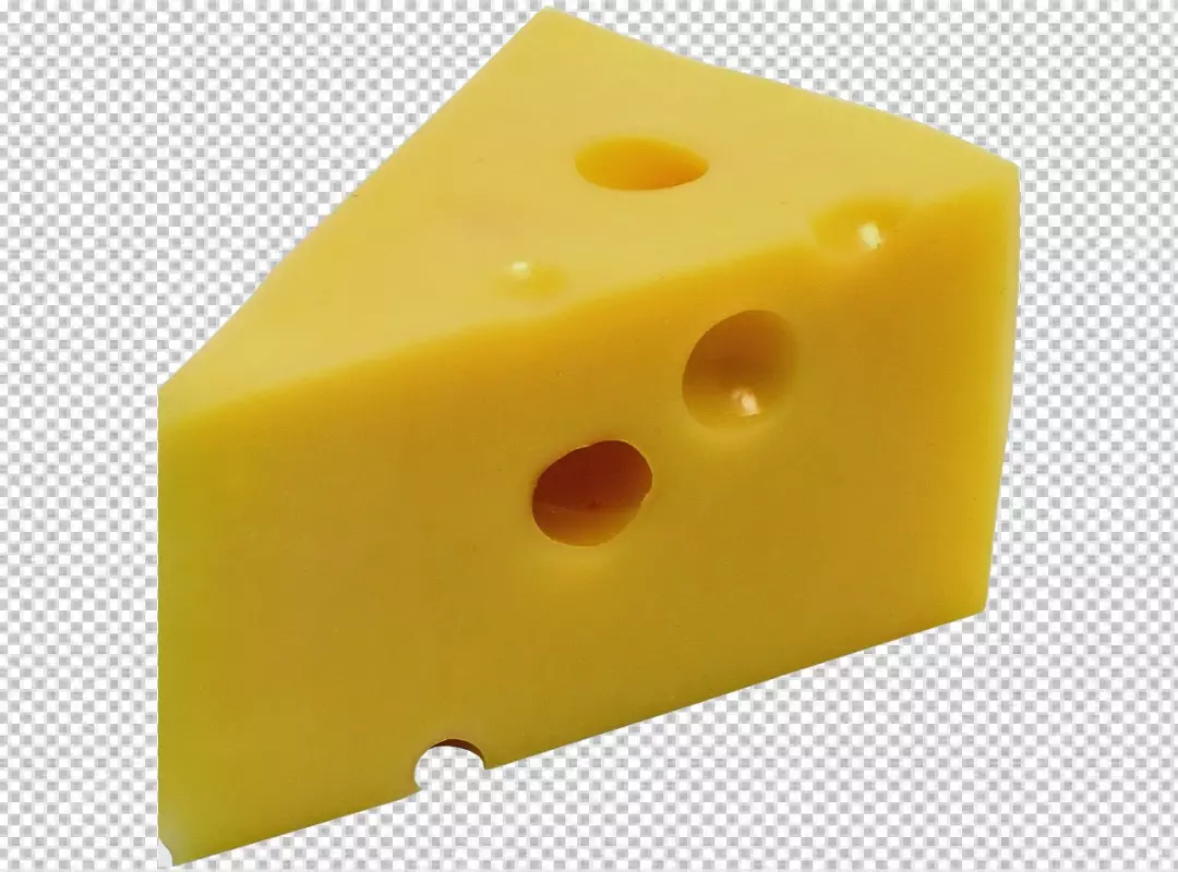 Triangular Pieces of Swiss Cheese Close up Isolated on PNG Background