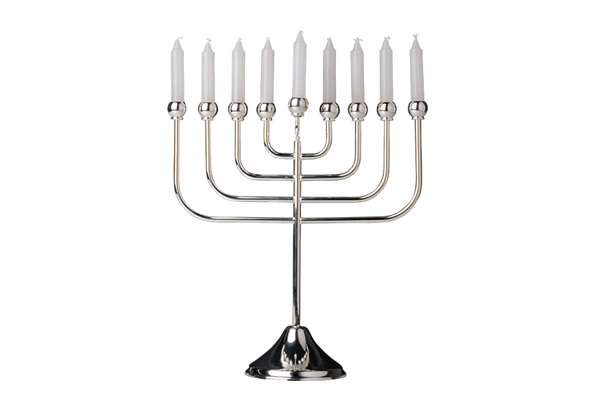 Dreidels lying on table near menorah transparent background