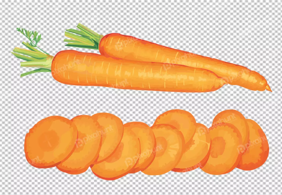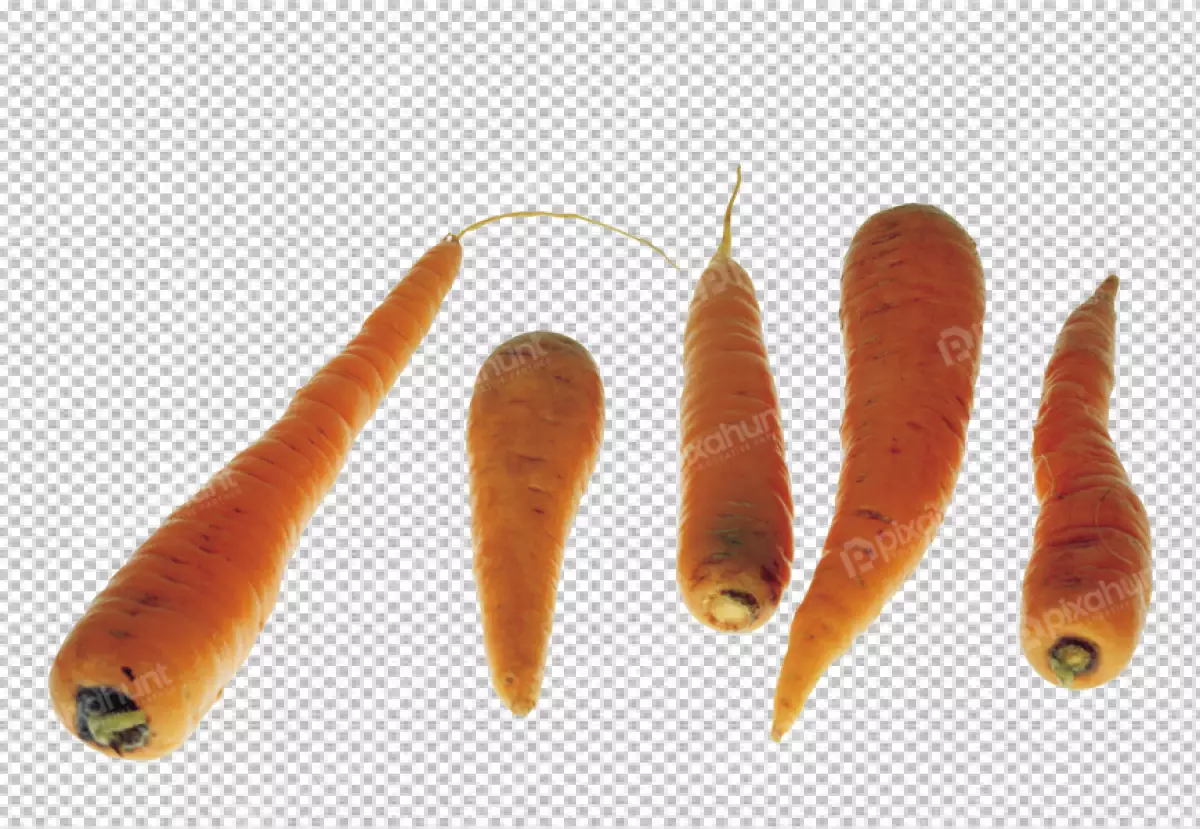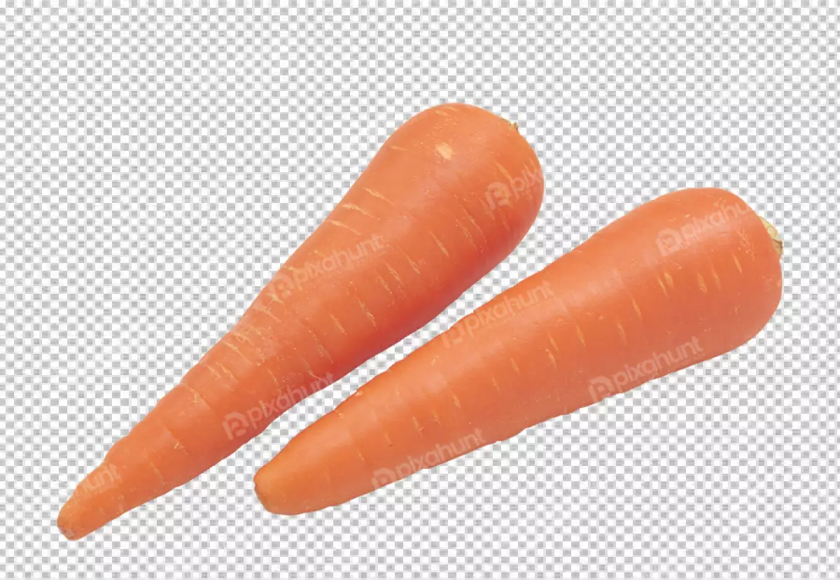 Fresh carrot vegetable with leaves isolated on transparent background cutout