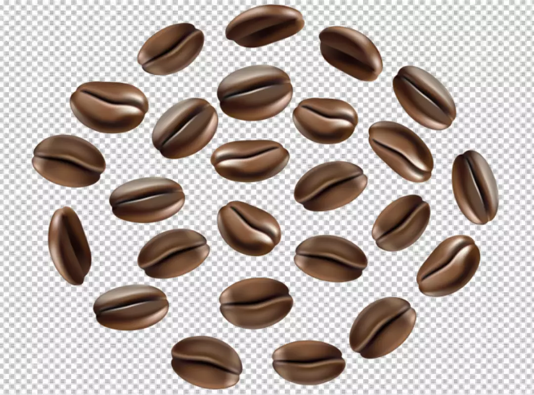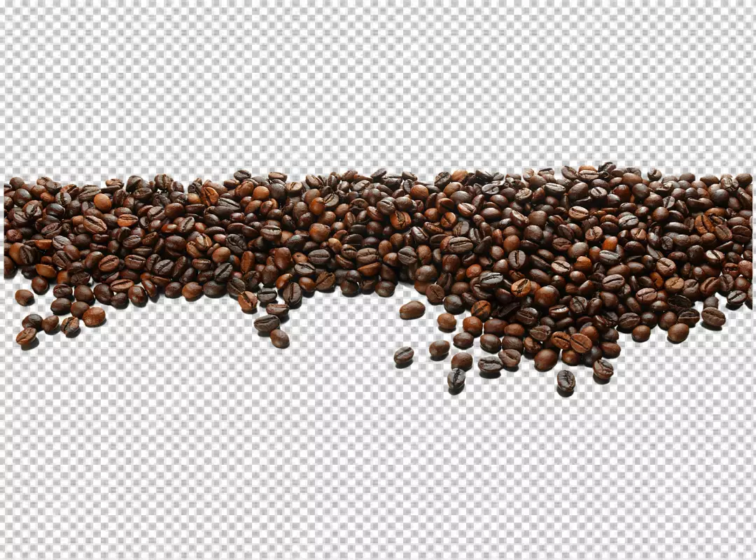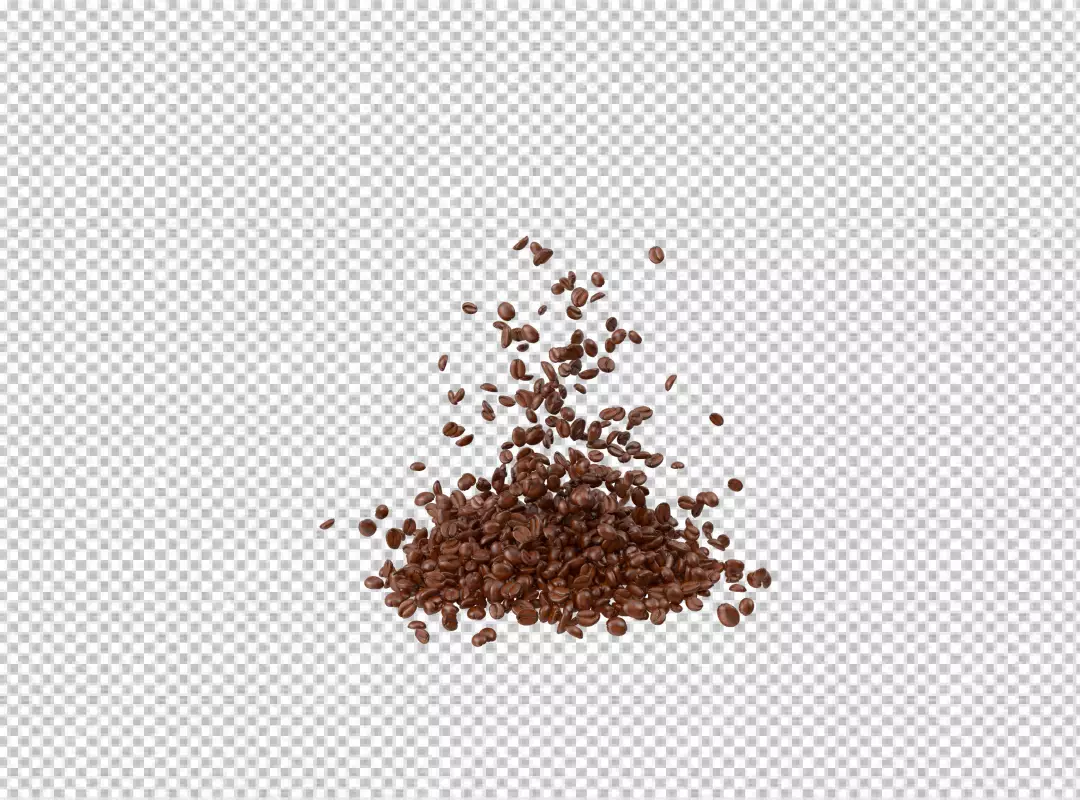 A bunch of coffee beans are floating in air on a transparent background PNG