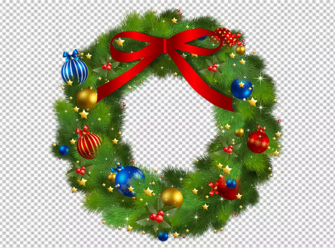 Beautifully crafted Christmas wreath with red bows and green pine needles transparent background