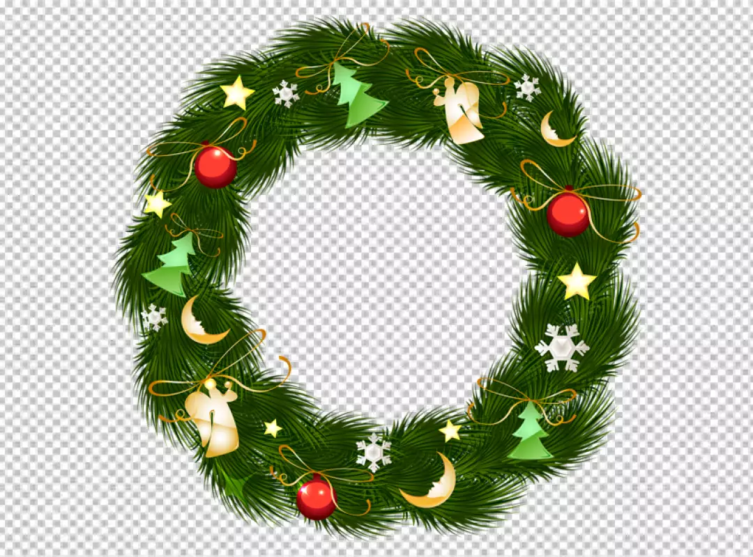 A wreath with a red berries on it is shown on a transparent background PNG BG