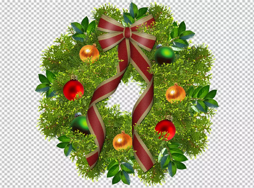 A wreath with a red berries on it is shown on a transparent BG PNG