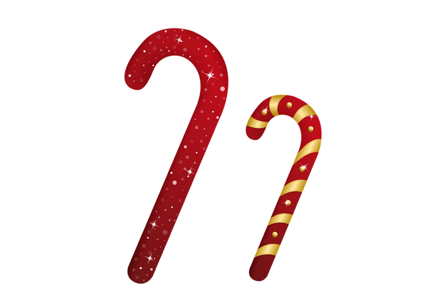 candy canes with stripes on a white isolated transparent background