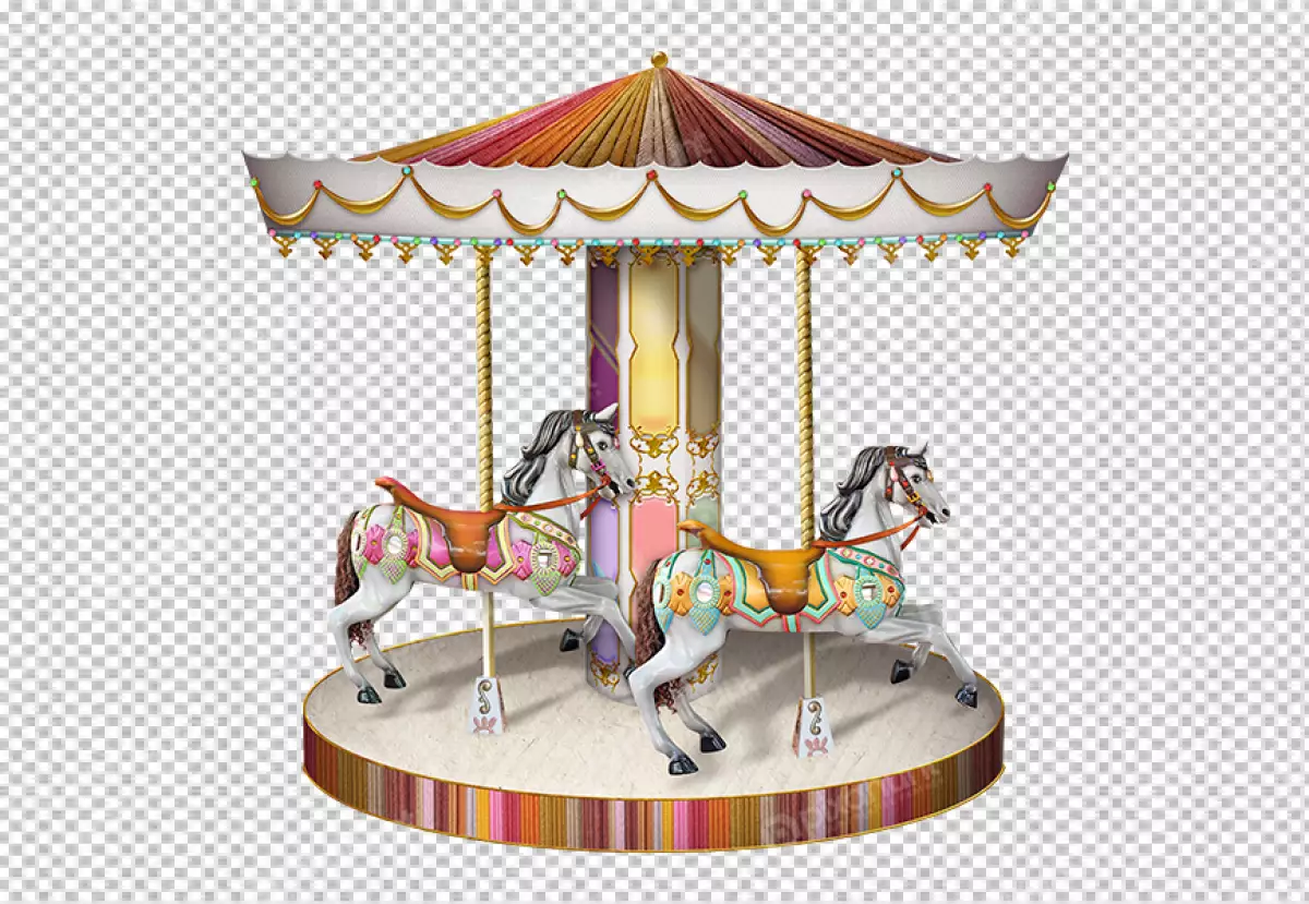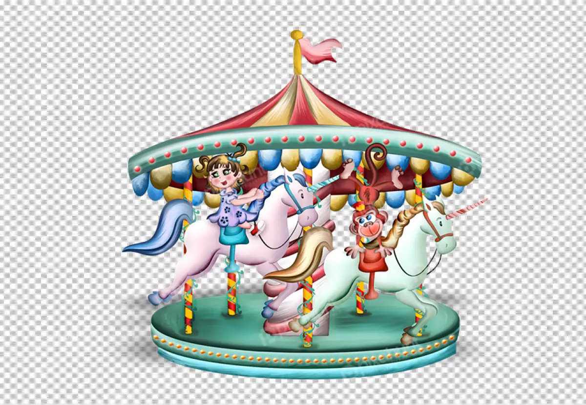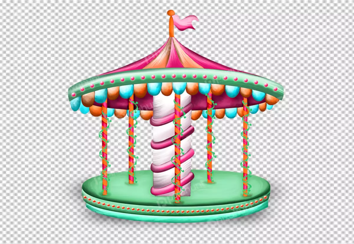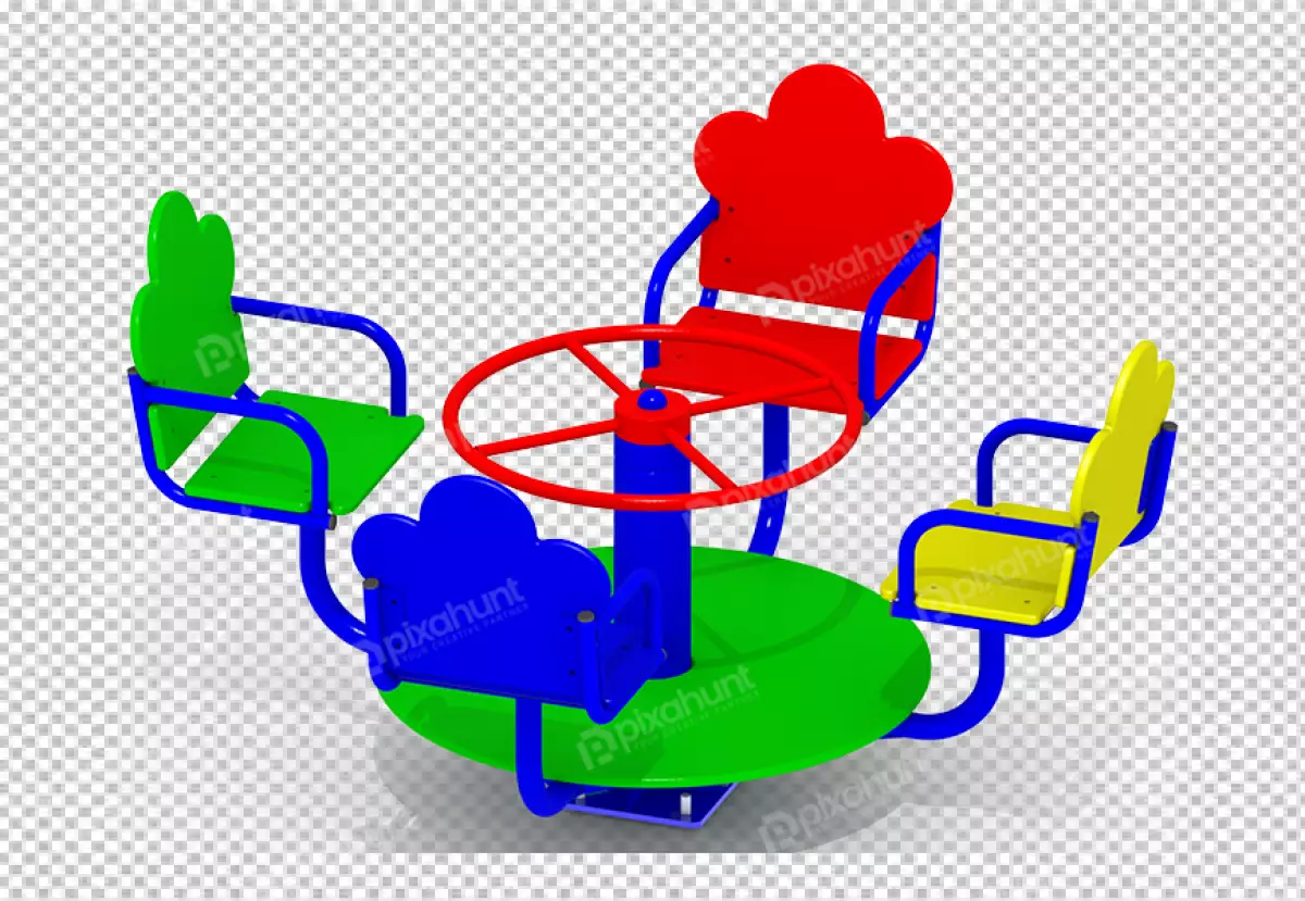 Colorful Toy Carousel Wood and Metal Bright Colors Rotating Base Carvcreative