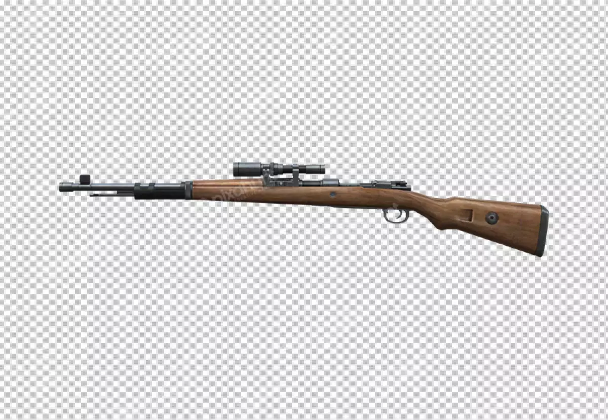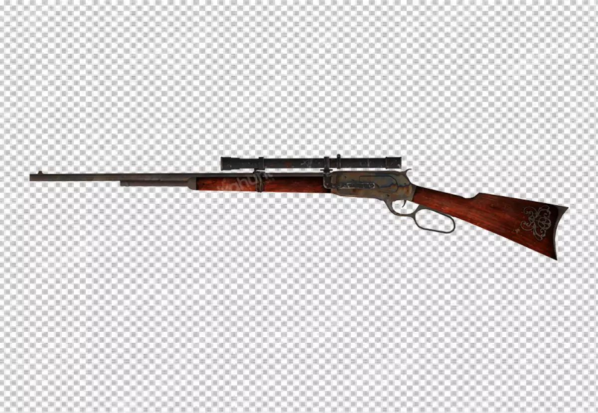 The brown wooden air rifle for shooting range with optical sight isolated on transparent background