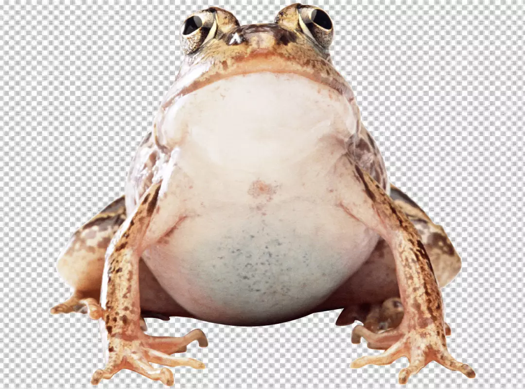 A frog is sitting on a transparent background is facing the left side