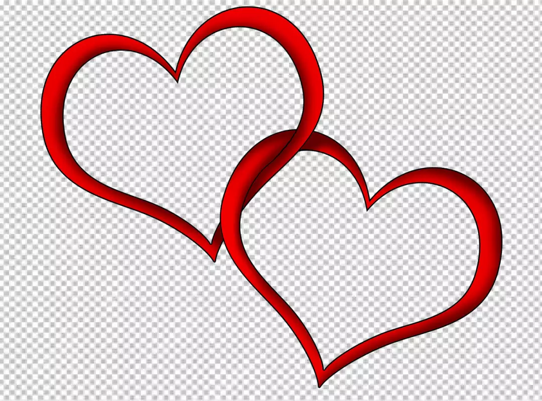 Two intertwined red hearts against a black background, symbolizing love and connection.