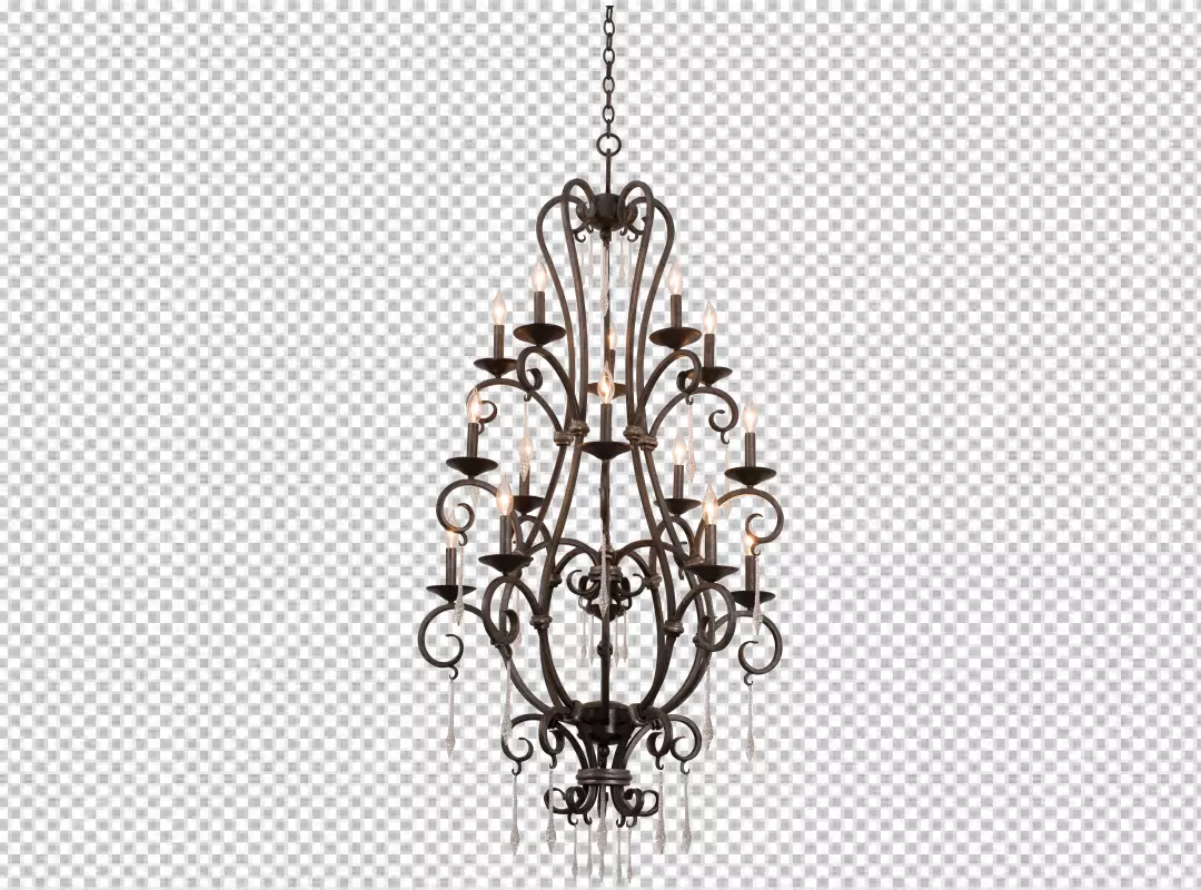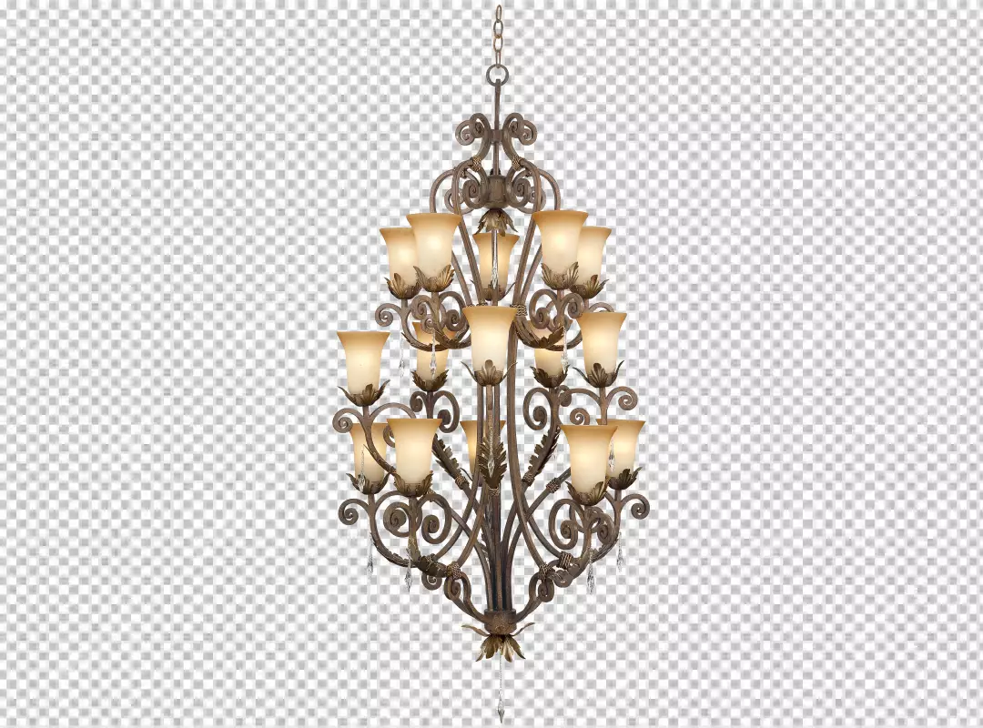 Chandelier on the ceiling isolated on png background hanging lamp pendant light