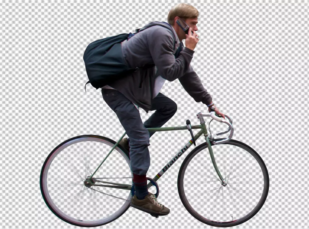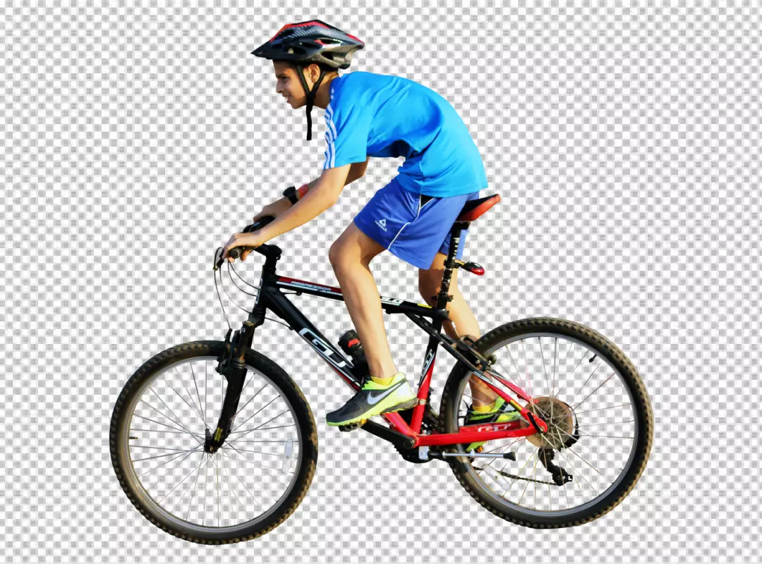 A cyclist man riding a bicycle isolated transparent background