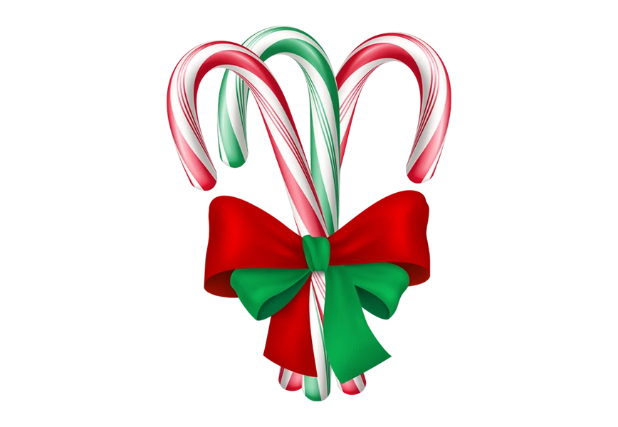 New Years sticks candy canes with stripes on a white isolated transparent background
