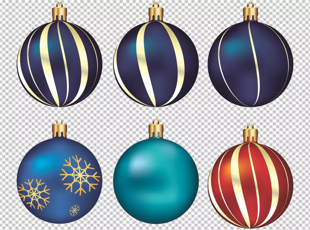 A red and a white Christmas balls hanging in isolation on a transparent background