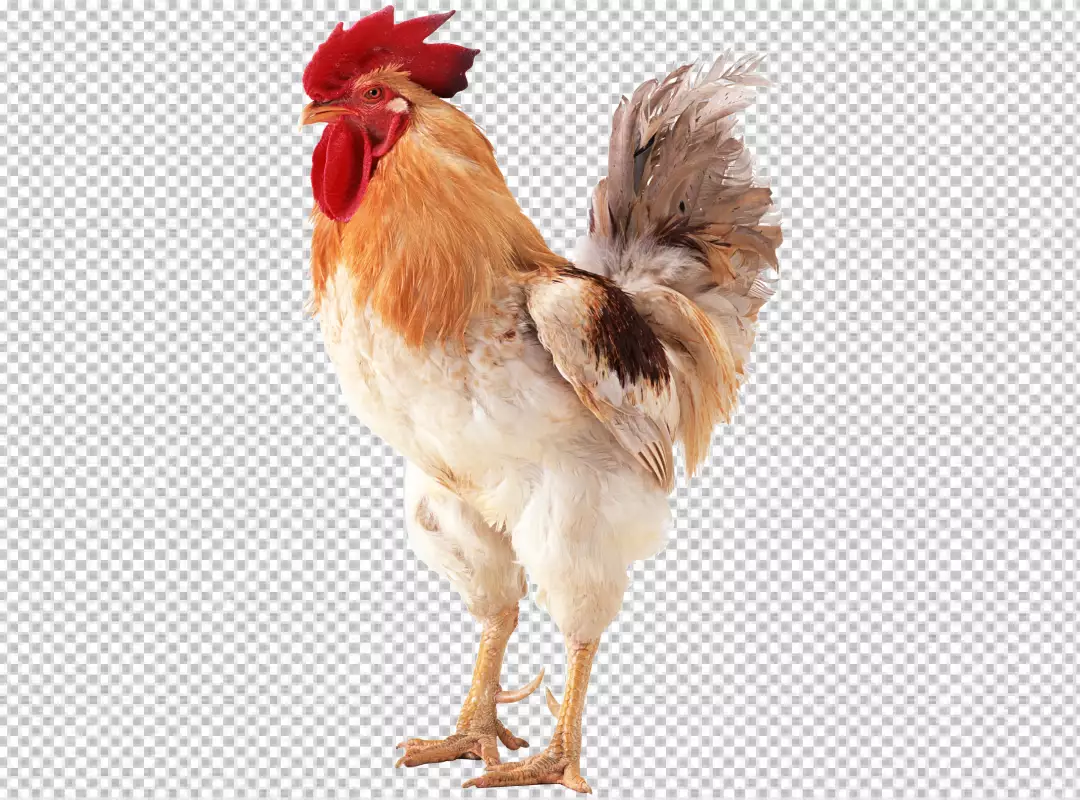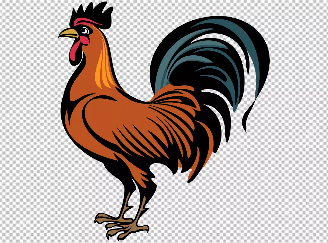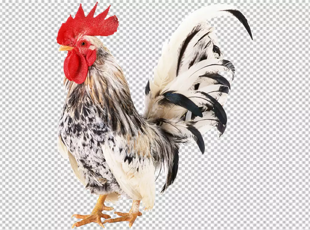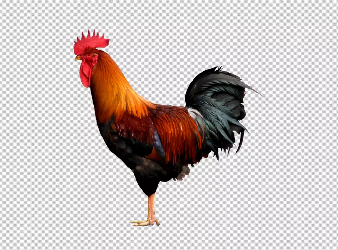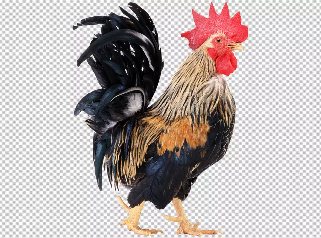 bantam rooster with red head yellow beak blue feather and visible transparent PNG