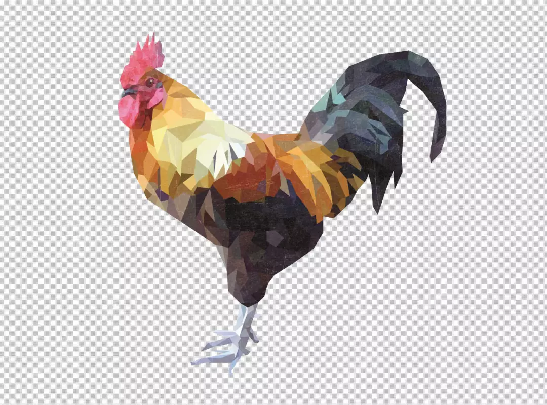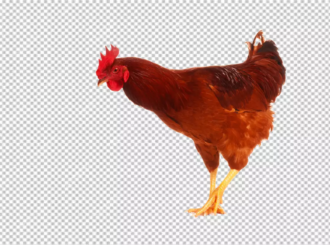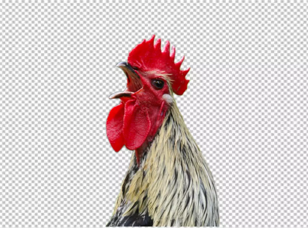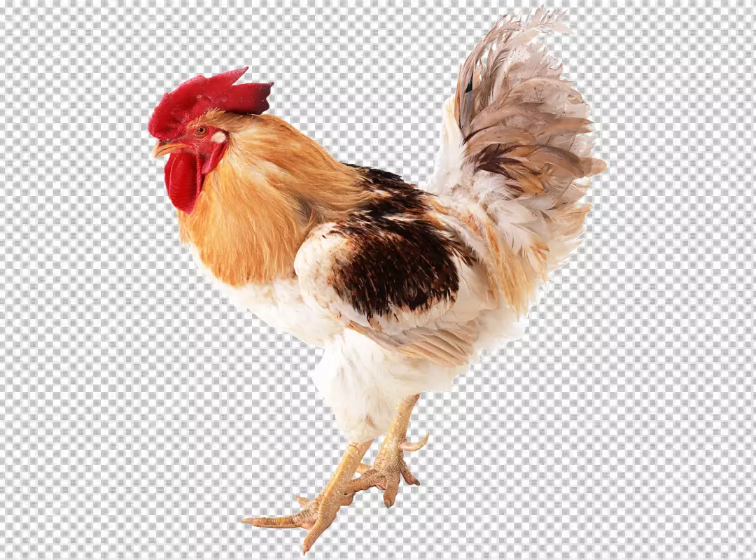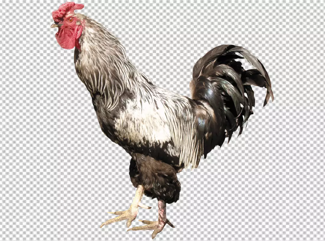 bantam rooster with red head yellow beak blue feather and visible transparent PNG
