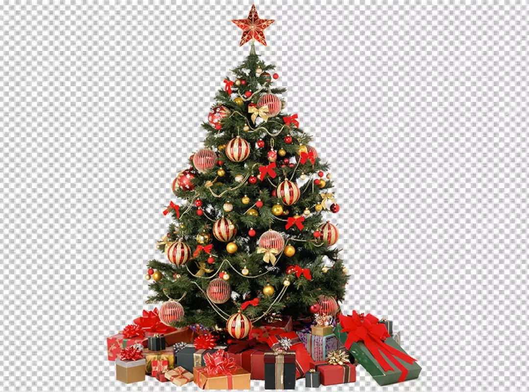 Christmas with Colorful Ornaments Isolated on transparent Background