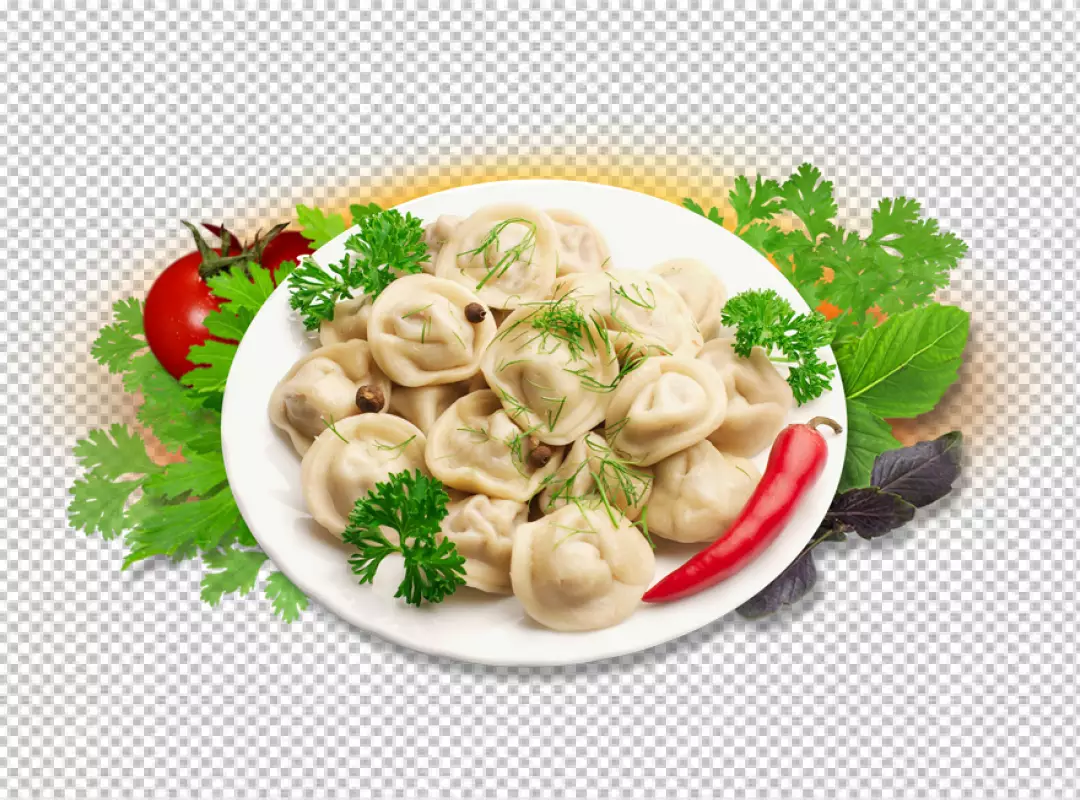 A bowl of dumplings with a png background with a picture of a picture of a food in the middle.