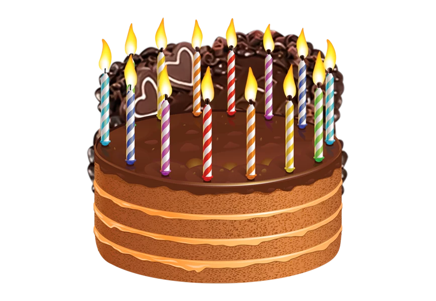 3d view of delicious looking cake with lit candles transparent background png