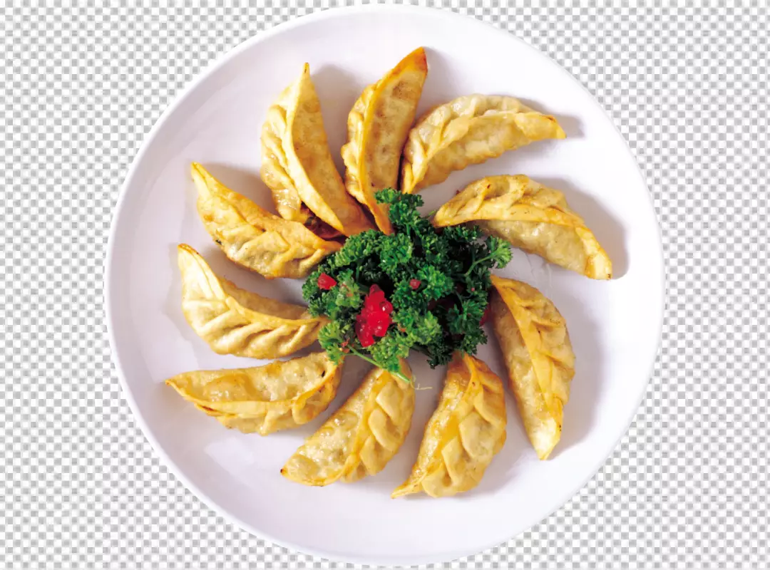 Gyoza or dumplings snack with soy sauce selective focus copy spaceand chopsticksside view