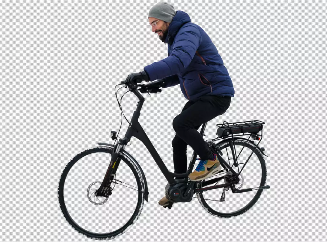 Silhouette of cyclists riding on a mountain for outdoor sports transparent background