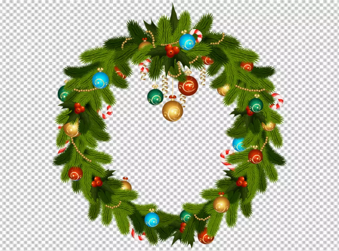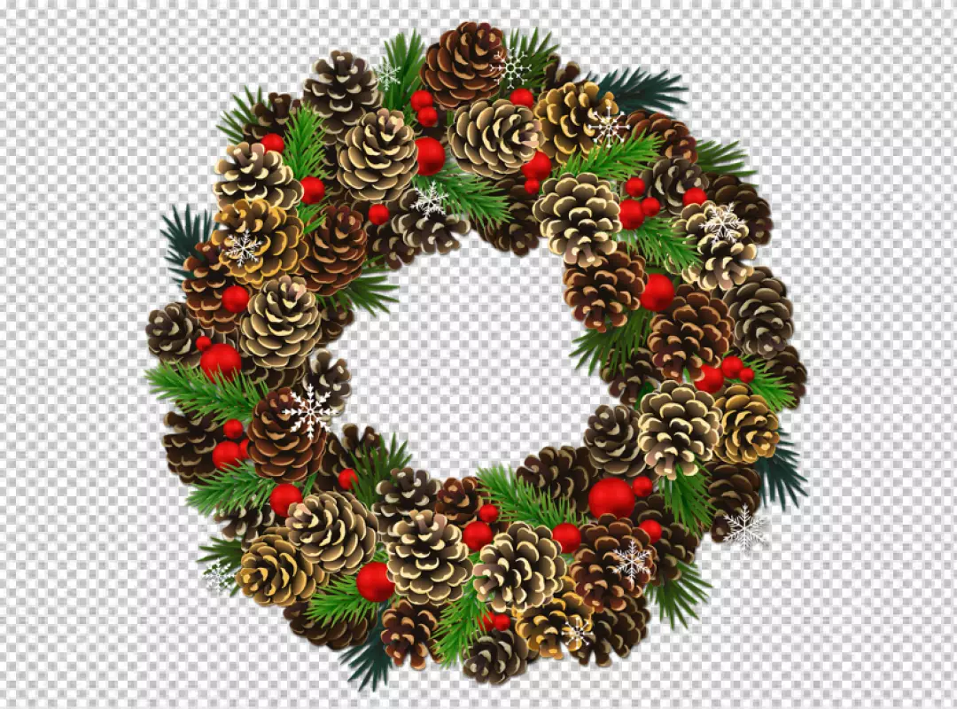 A wreath with a red berries on it is shown on a transparent background PNG BG