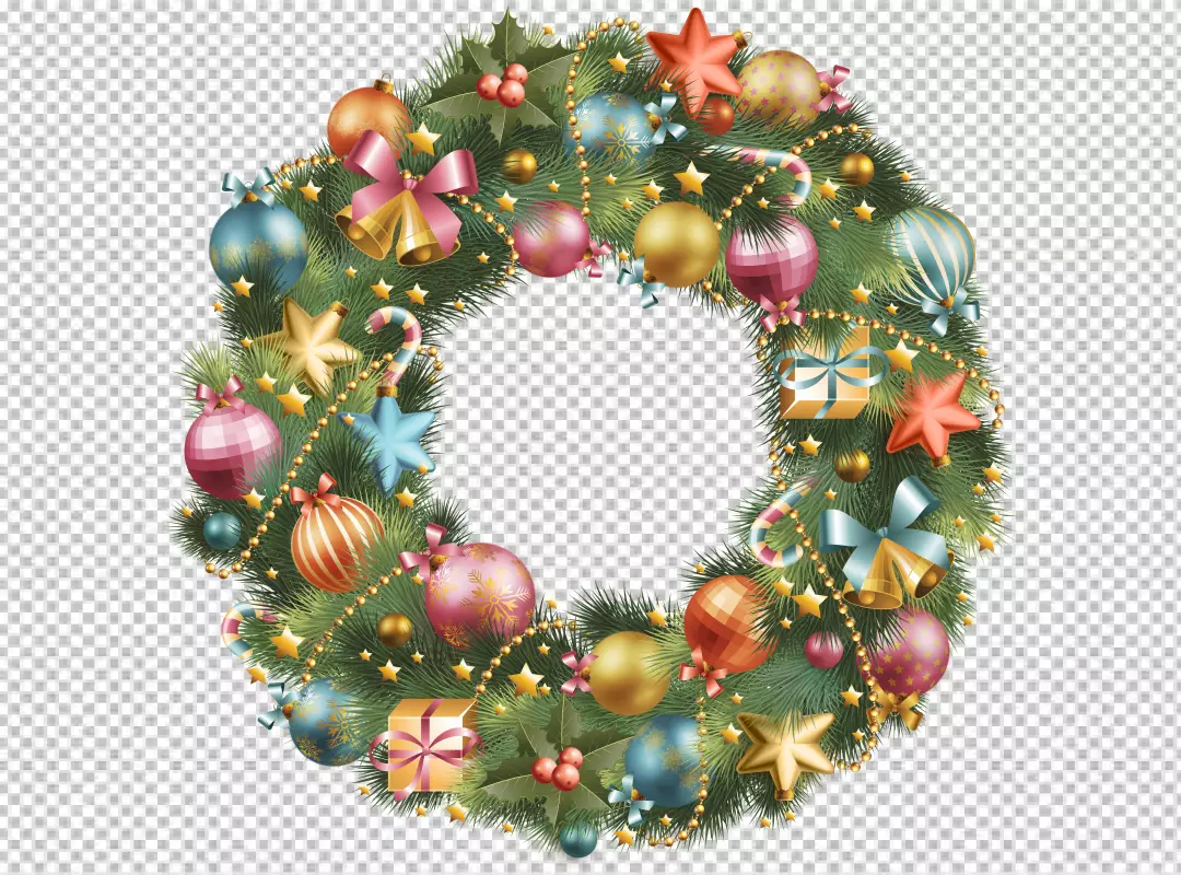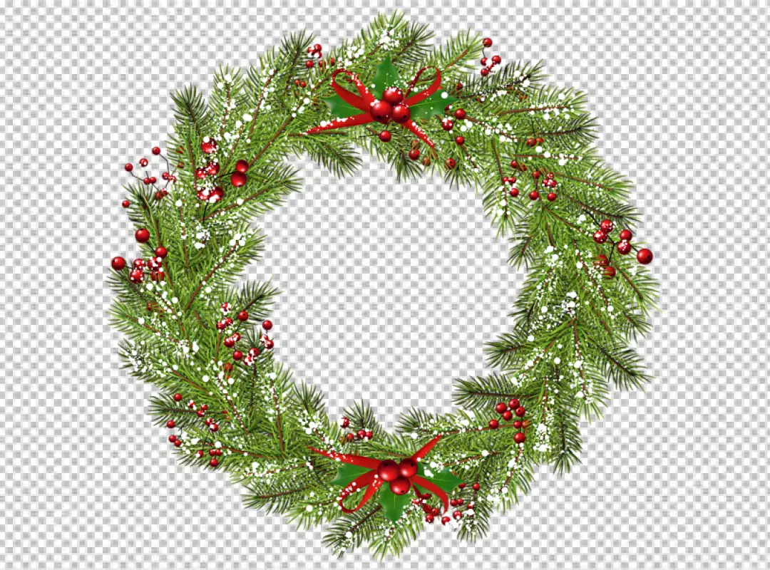 A wreath with a red berries on it is shown on a transparent BG PNG