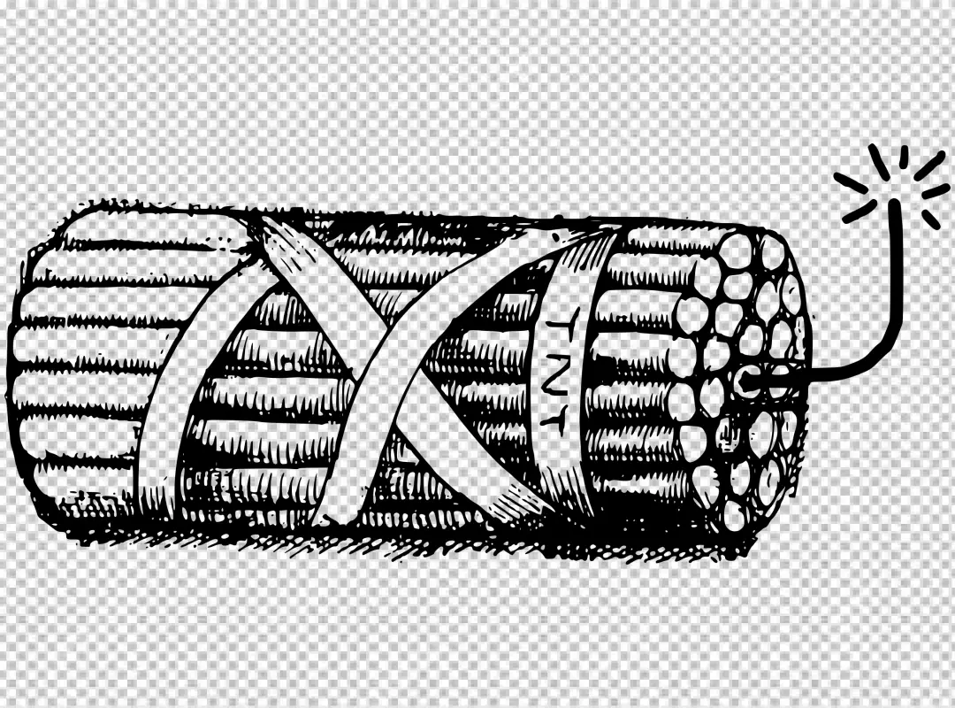Alarm clock and sticks of dynamite fashioned into a time bomb transparent background