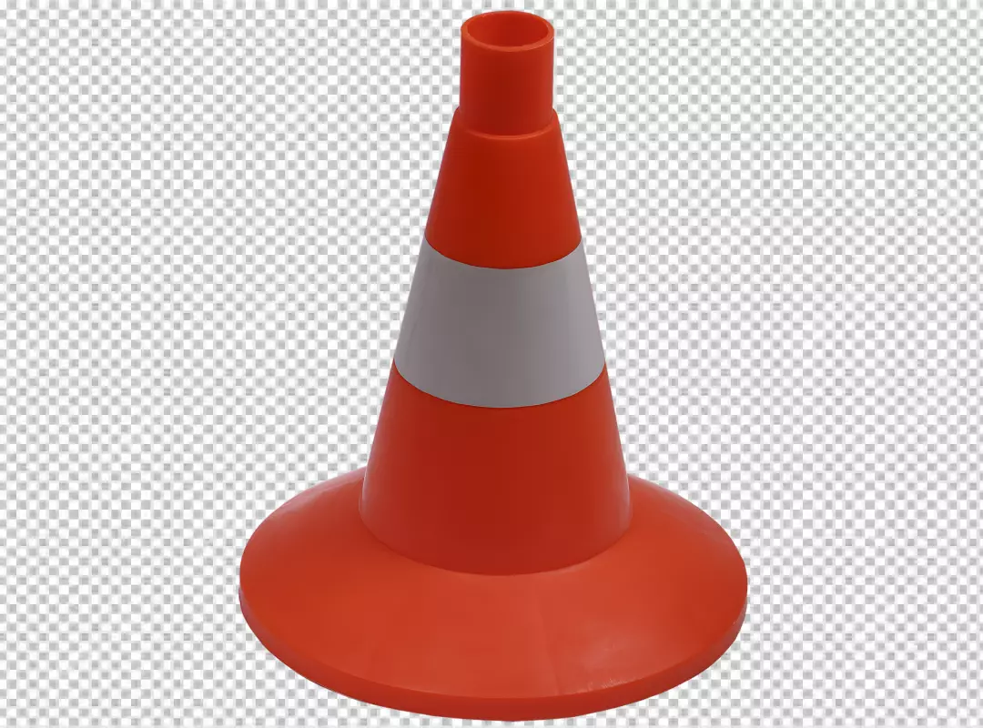 An orange and white traffic cone on transparent background