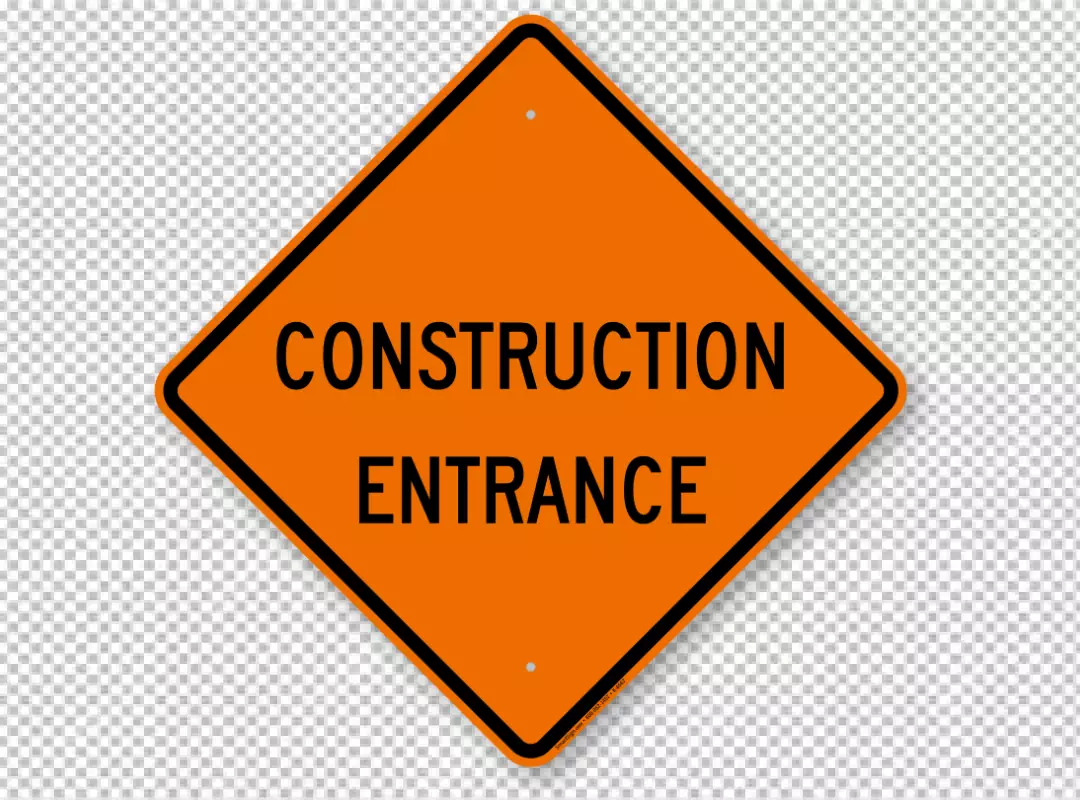 Orange Diamond Construction Entrance Warning Sign