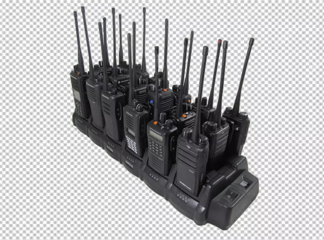 Portable radios walkietalkie Twoway radios rechargeable 3D rendering isolated on transparent