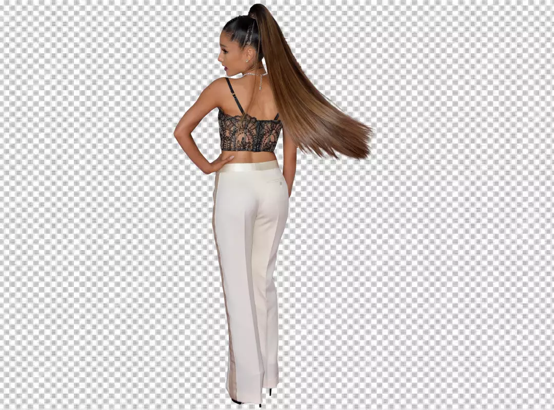 Elegant Woman in Lace Top and White Pants in Fashion show